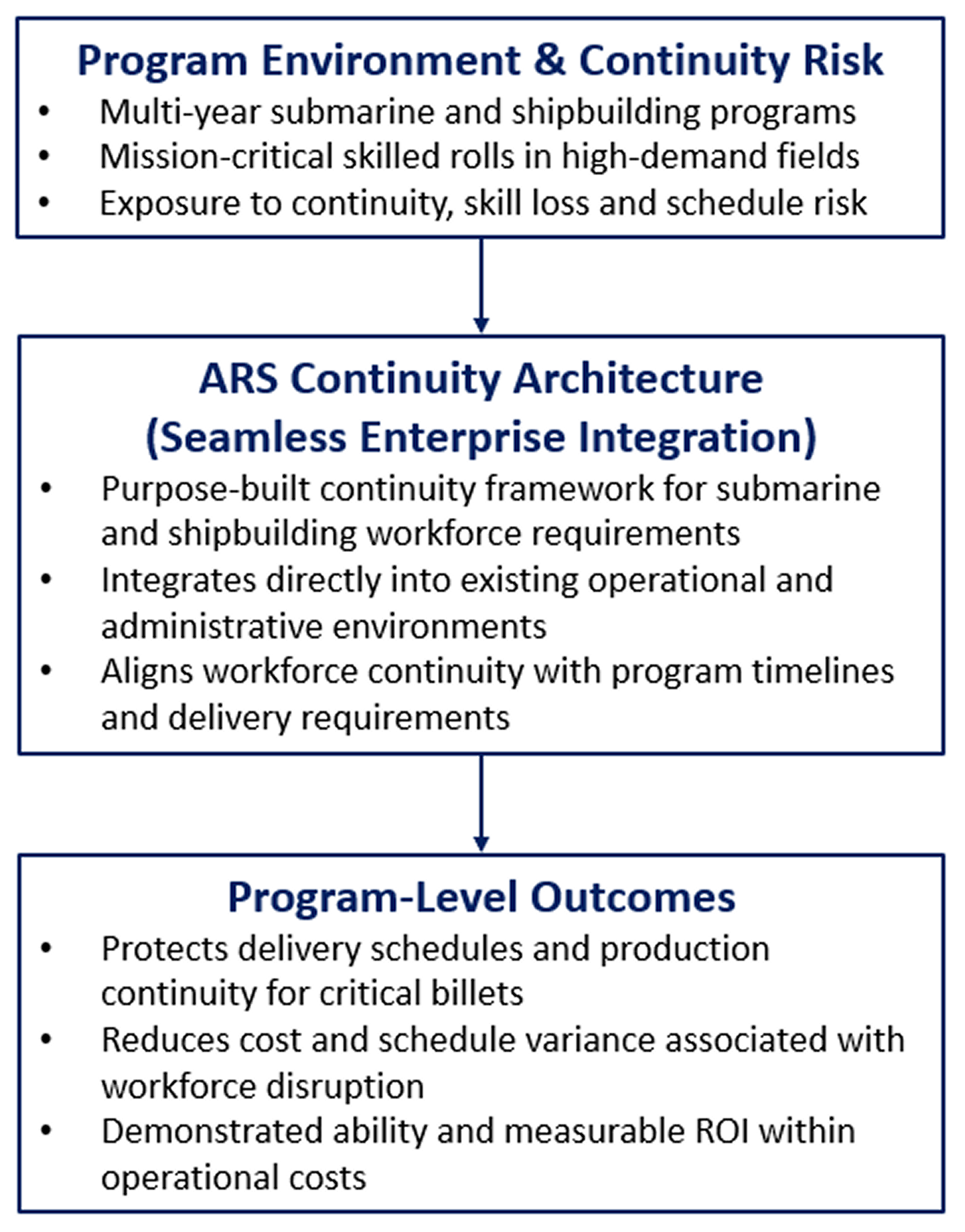 Shipbuilding and sustainment depend on continuity in critical skilled roles. Attrition rates of 20–22%—and 30% in high-demand billets—continue to disrupt production tempo. Schedule delays in prior years highlight the need for a continuity architecture that protects output, delivery, and readiness.
